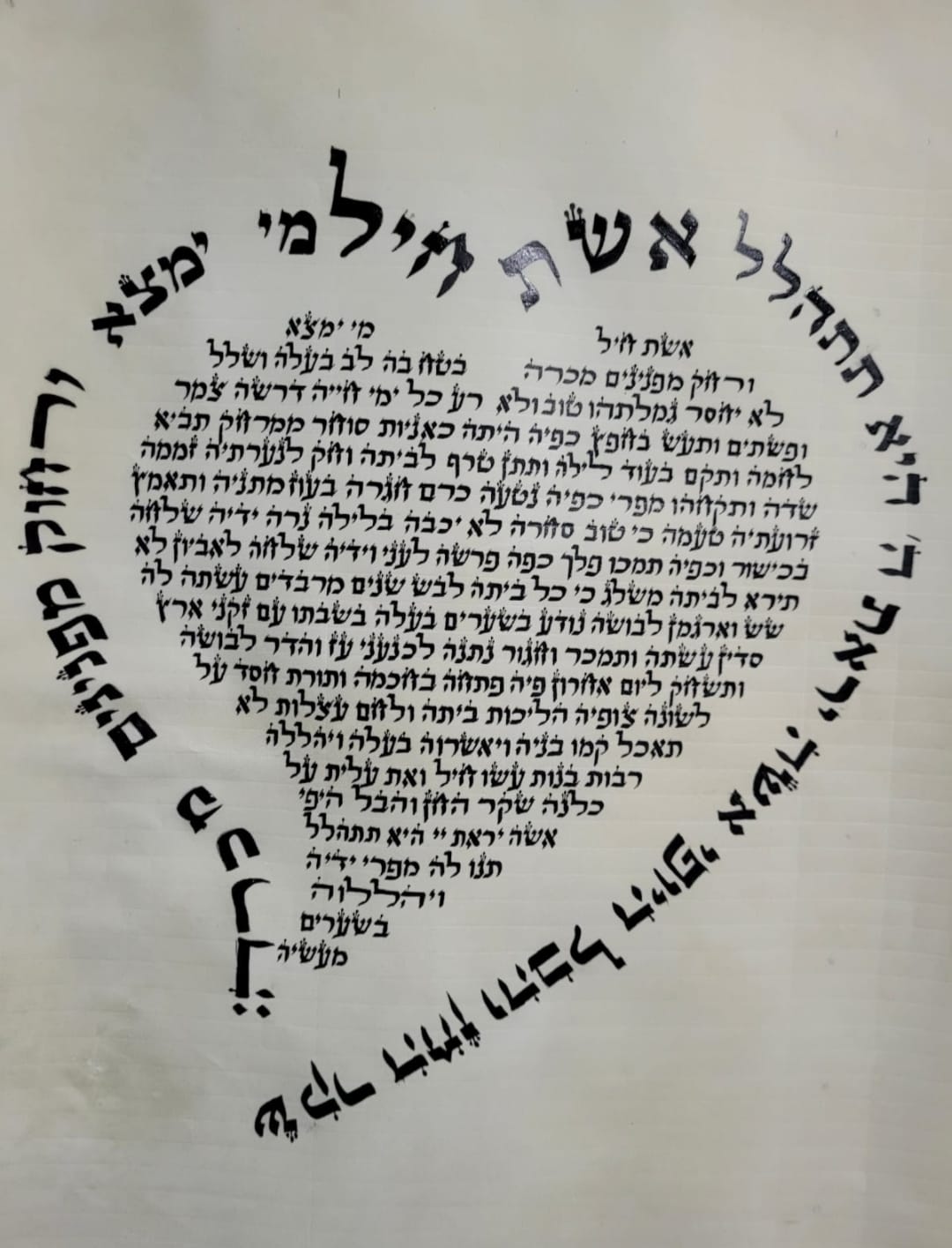 אשת חיל דגם קלאסי עם טקסט בצורת לב וכתב אומנותי