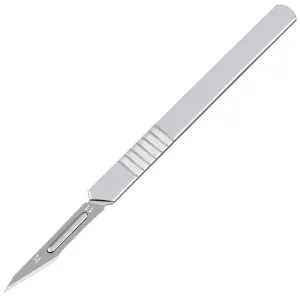 סכין מנתחים (סקאלפל) עם ידית מתכת להב חד ומחודד.