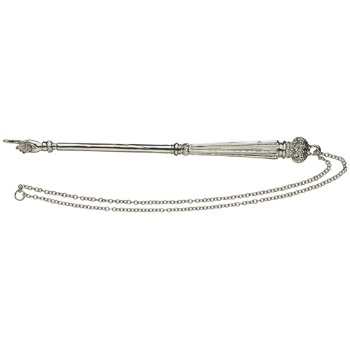 יד לספר תורה מעוטרת, עשויה מתכת, עם שרשרת תלויה.