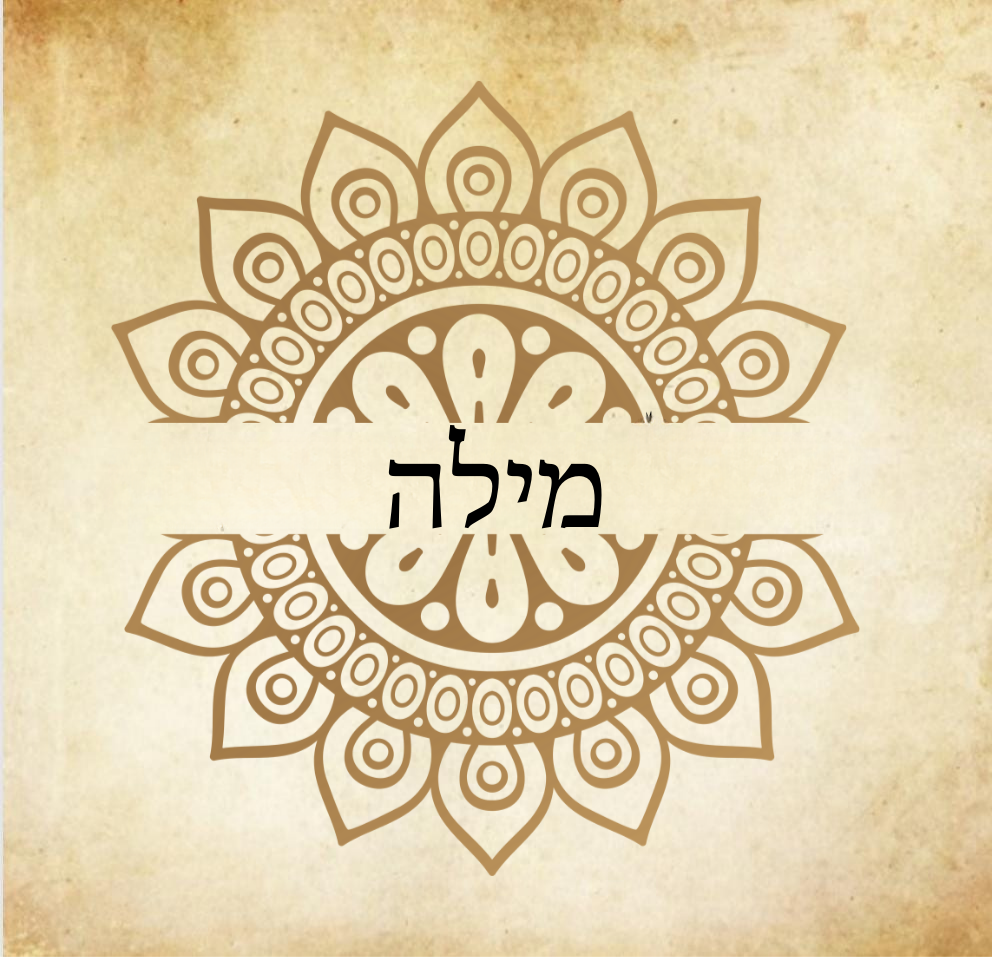 תווית עם כיתוב "מילה" על רקע מעוצב