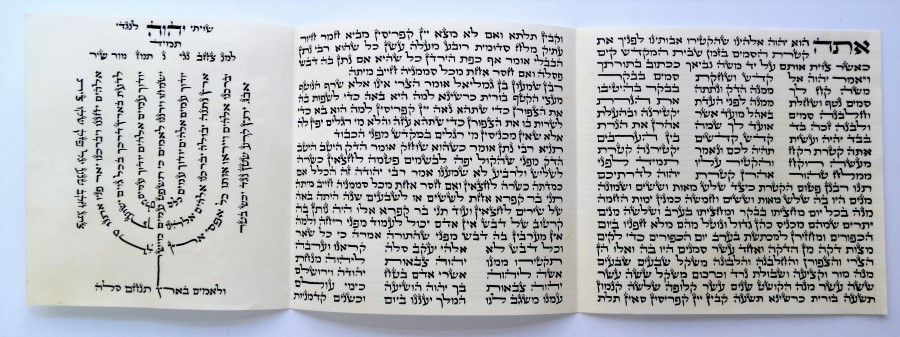 פיטום הקטורת, דף תפילה בכתב עברי שחור, עם מגן דוד מצד שמאל, ועץ חיים מצד ימין.